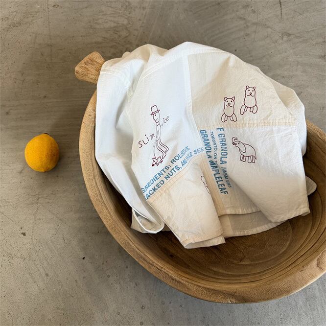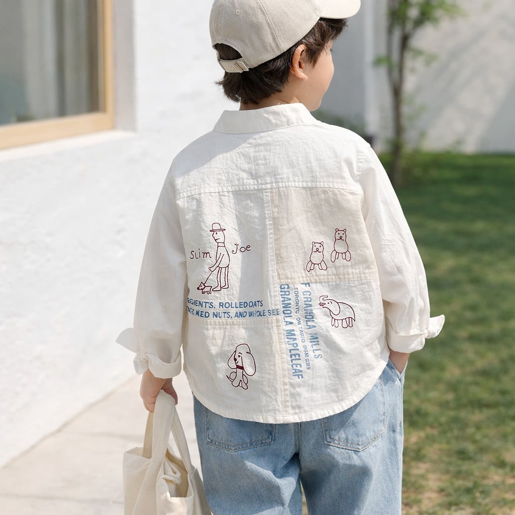 ナチュラルな風合いに可愛いイラストが映える、薄手シャツ