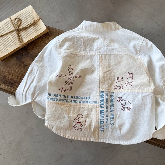 即納★薄手シャツ★羽織り★長袖★カートゥーン★切り替え★シャツジャケット★男女兼用★ベビーキッズ★子供服★1color★90/100/110/120