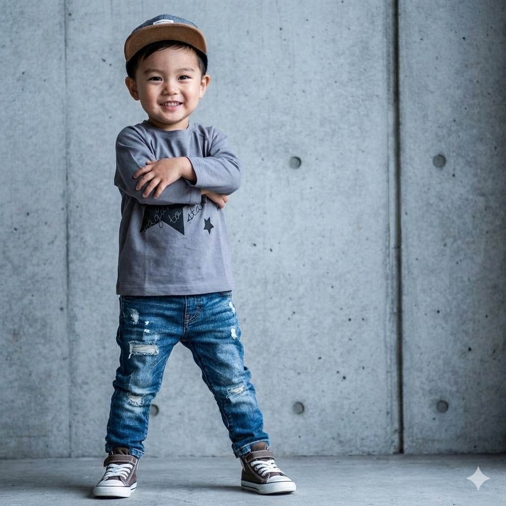 デニムやレギンスとも合わせやすく、普段着や保育園着にもおすすめ◎