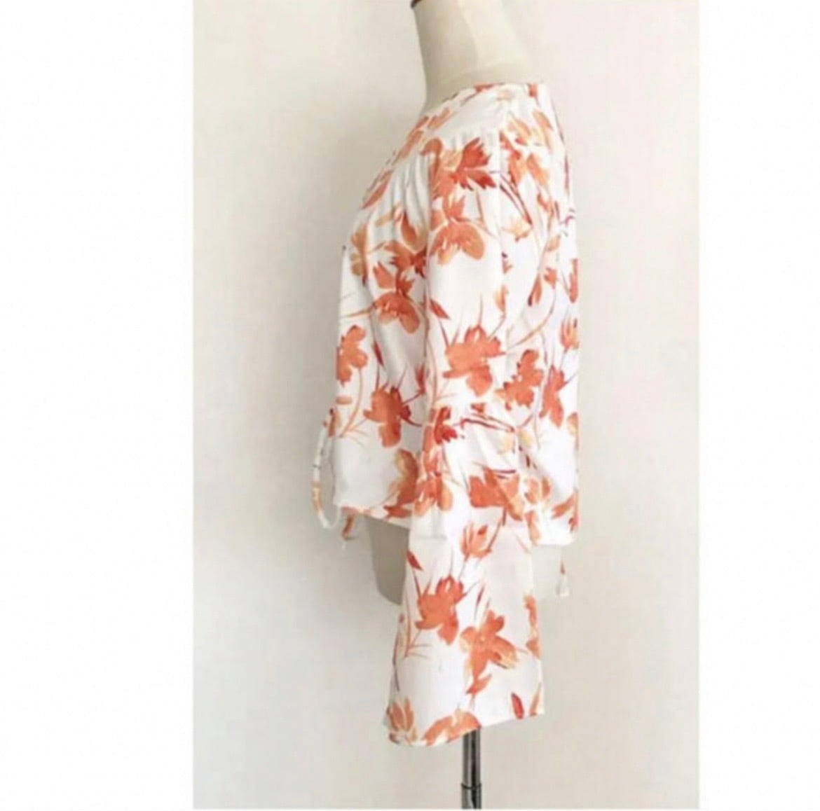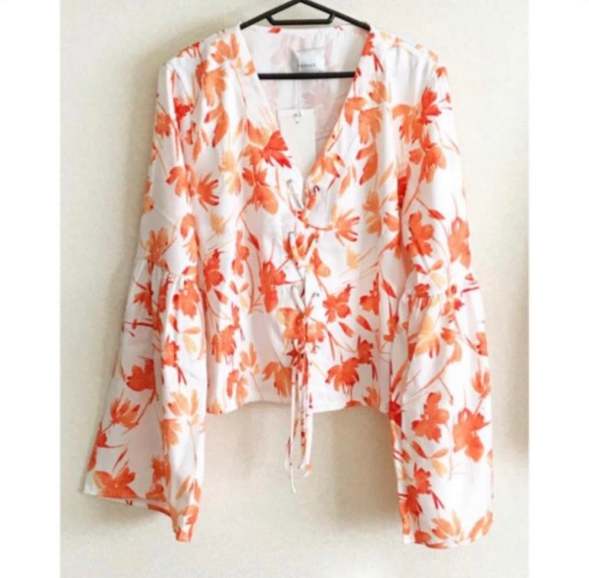 即納★花柄ブラウス★オレンジ★フラワー★トップス★長袖★レディース★春★夏★1color★M