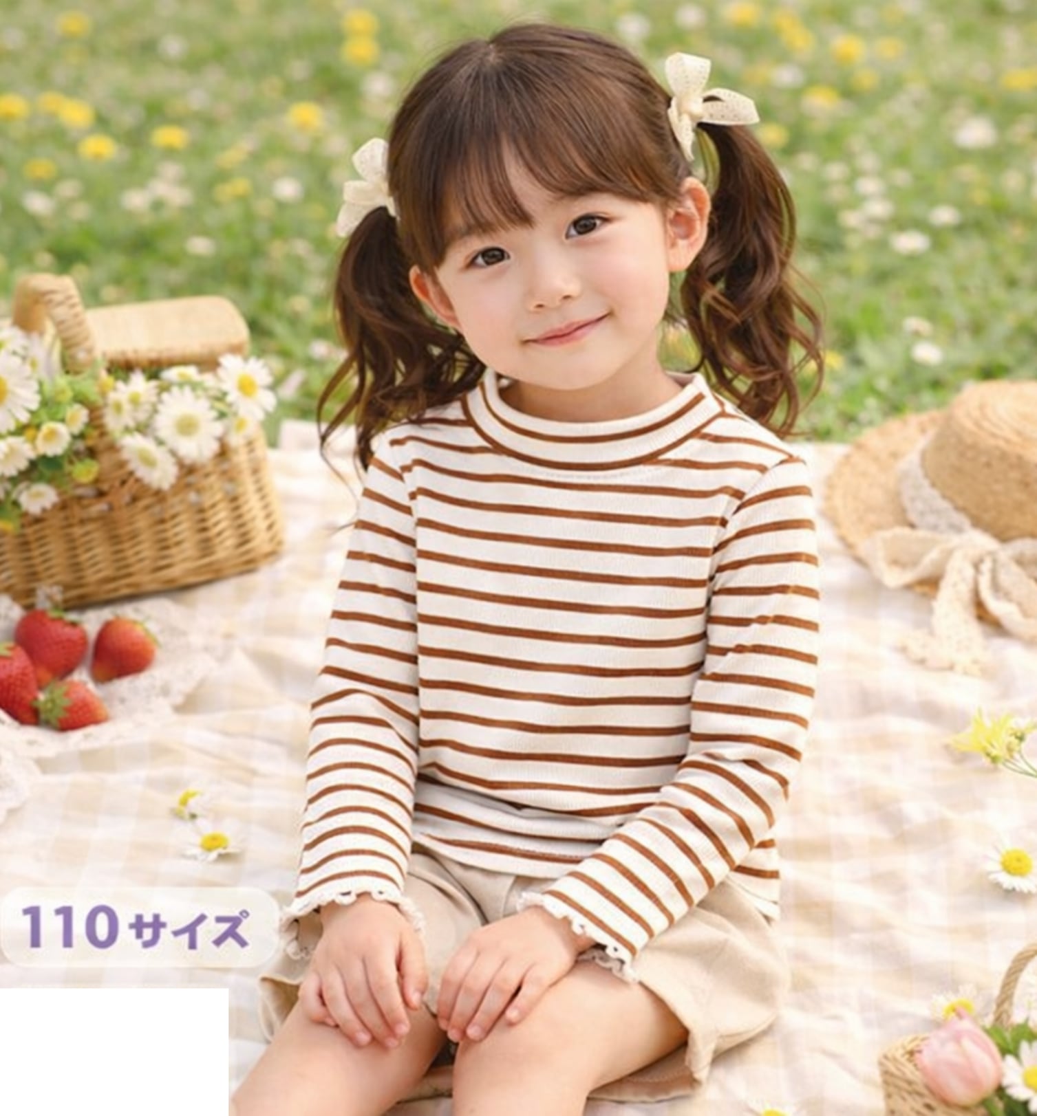即納★ボーダー★長袖Tシャツ★ナチュラル★女の子★春服★リブ★トップス★ベビーキッズ★子供服★1color★100