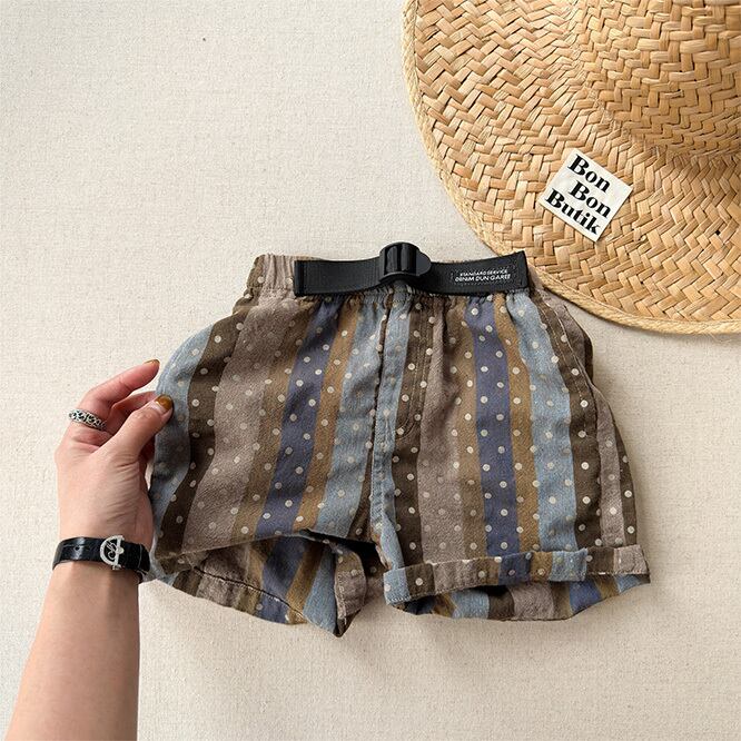 カラフルなストライプとドット柄が魅力のショートパンツは、涼しげで元気な印象を与えます♪
