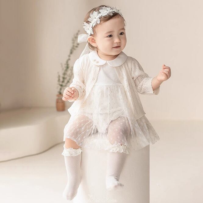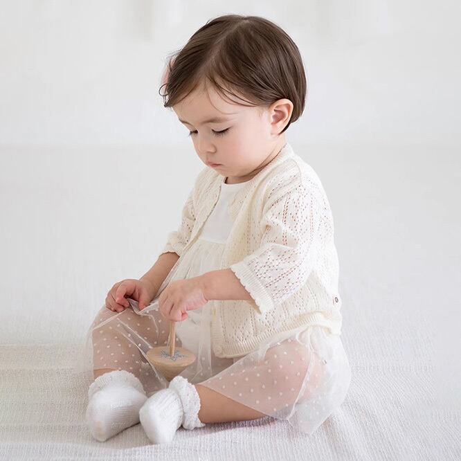 ニットカーディガン 薄手 通気性 ベビー 透かし編み ニットトップス 女の子