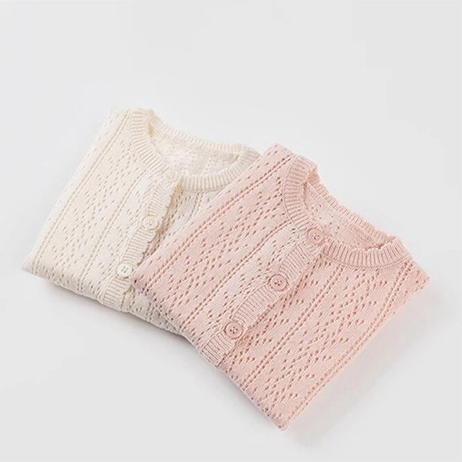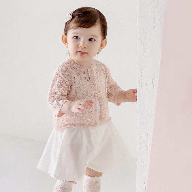 ニットカーディガン★薄手★通気性★透かし編み★女の子★ベビーキッズ★子供服★2color★73/80/90/100