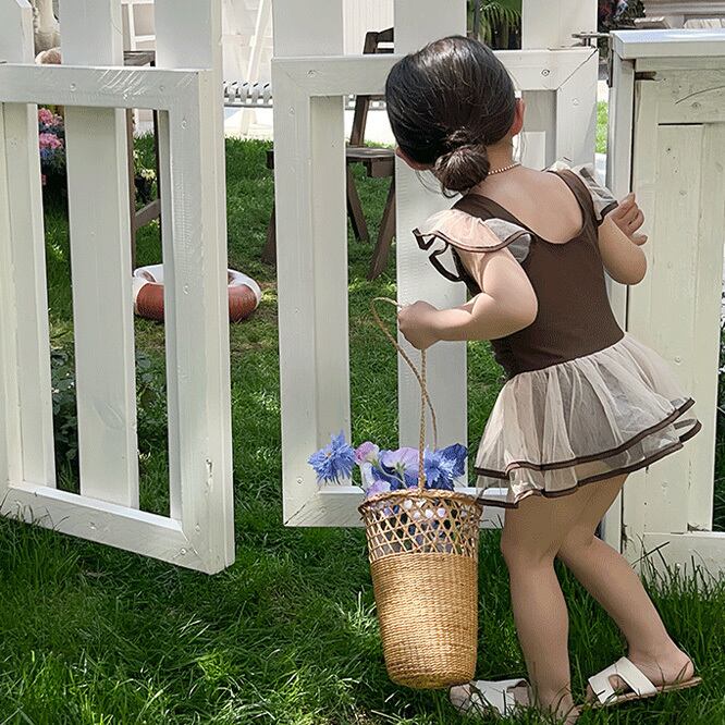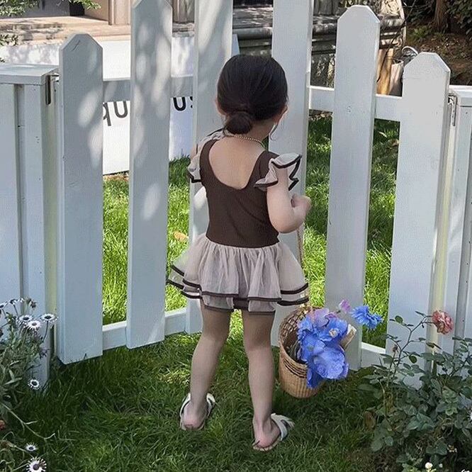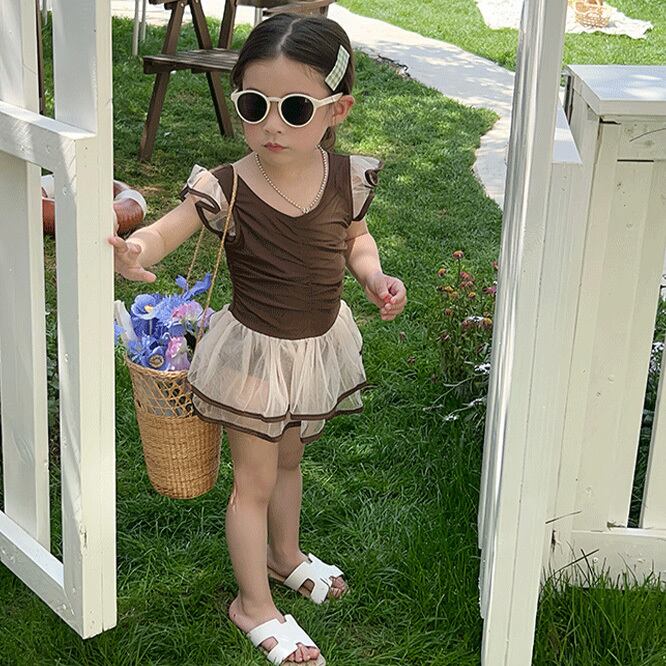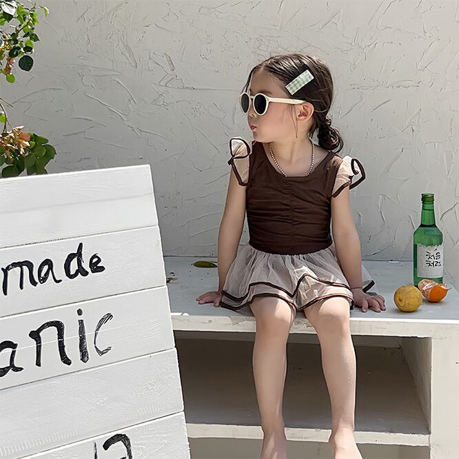 ワンピース水着★ブラウン系★プリンセス風★チュールスカート付★ビーチ水着★女の子★ベビーキッズ★子供服★1color★90/100/110/120/130/140