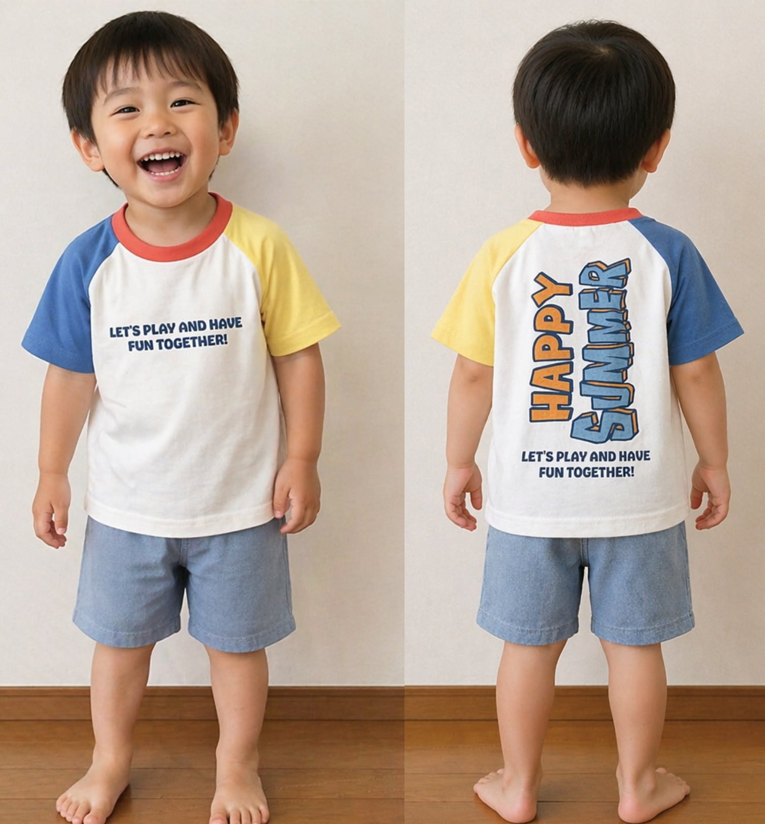 即納★半袖Tシャツ★ラグラン★配色★クレイジーパターン★バックプリント★ロゴT★キッズ★男の子★夏★ベビーキッズ★子供服★ベビーキッズ★子供服★1color★90