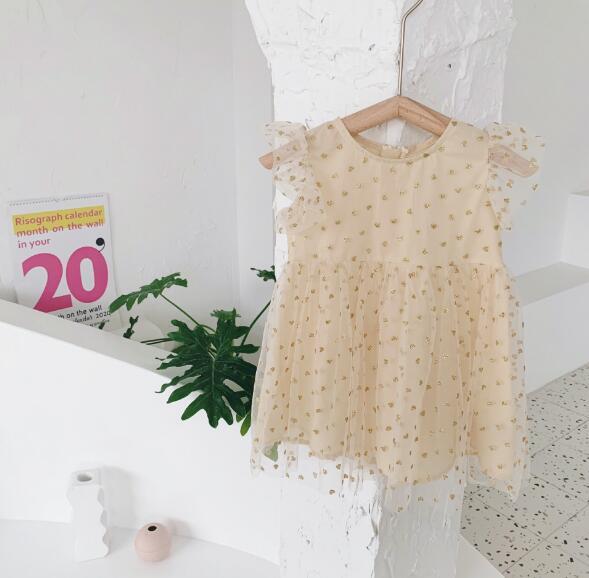 即納★キッズチュールワンピース★フリル★レース★ハート★袖なしワンピース★1color★80-130