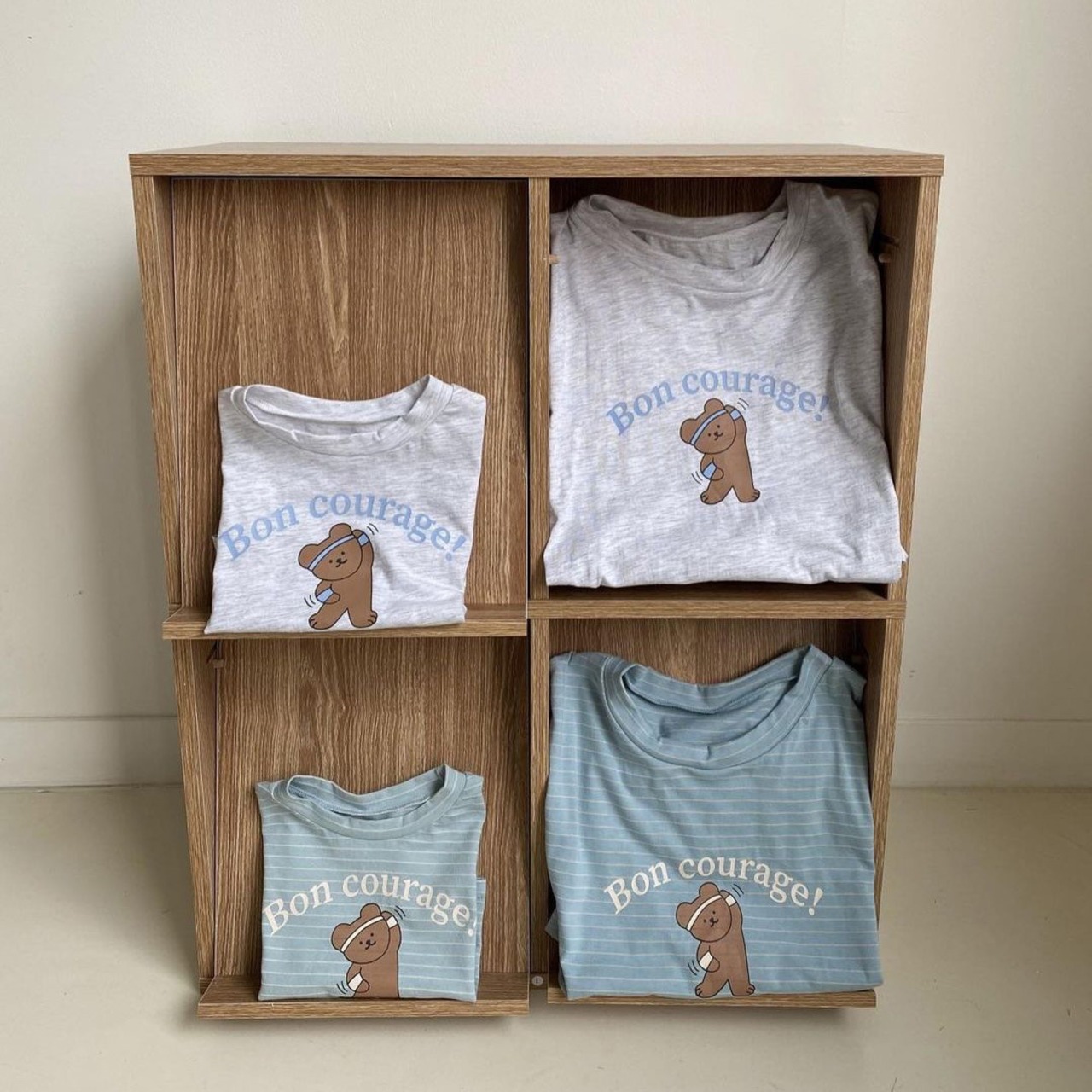 愛らしいクマキャラクターが描かれた、半袖Tシャツ