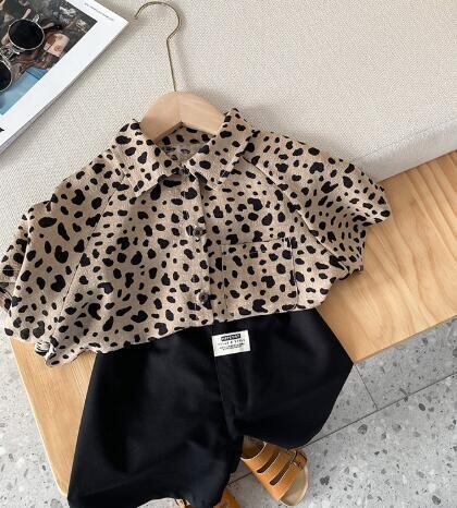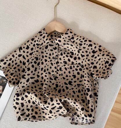 【即納】アニマル柄 ヒョウ柄 キッズ服 半袖シャツ ブラウス 1color 100-140