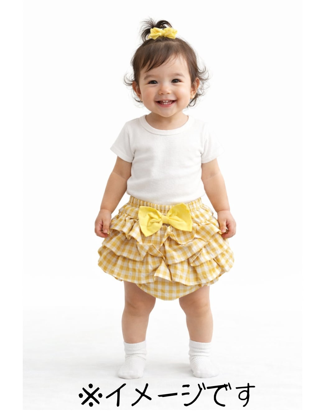 即納★韓国風子供服★ベビー服★ギンガムチェック★リボン付きミニスカート★パンツスカート★3color★80