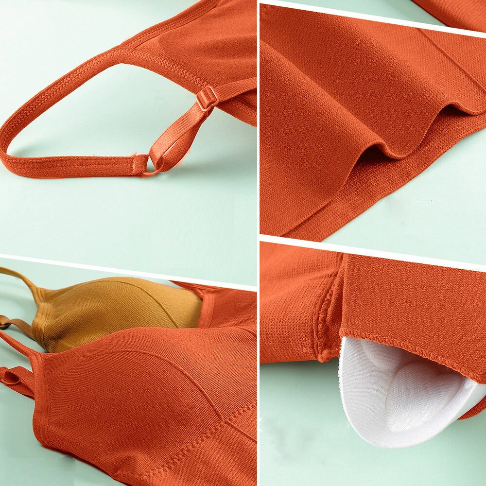 バストに負担の掛からないノンワイヤー仕様のカップ付きキャミソール