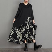 レディース★長袖切り替えデザインワンピース★1color★L-X