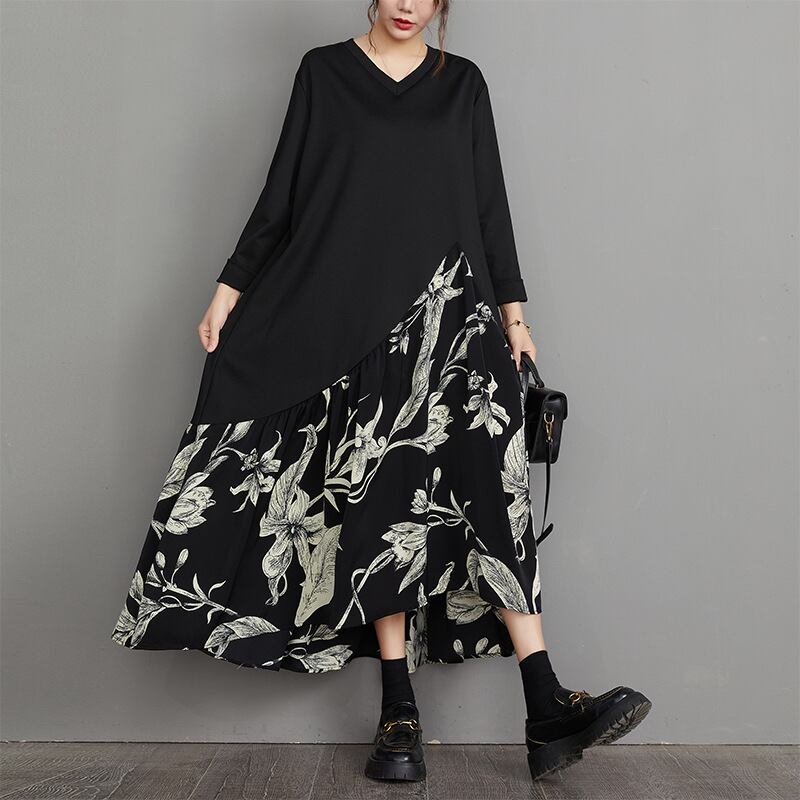 ※【2023秋新作】レディース長袖切り替えデザインワンピースおしゃれ