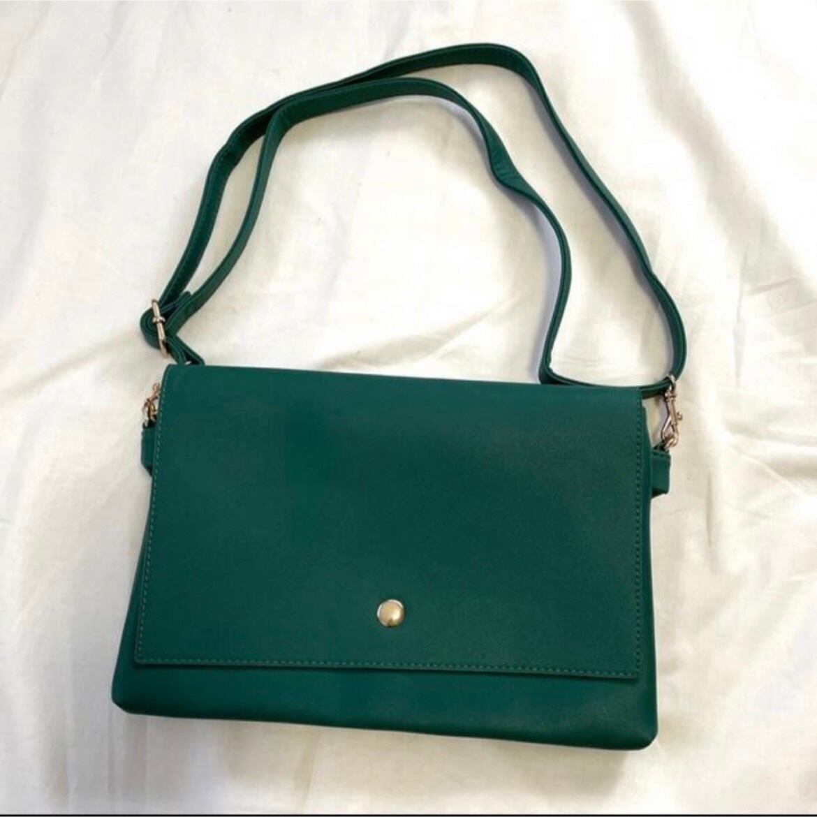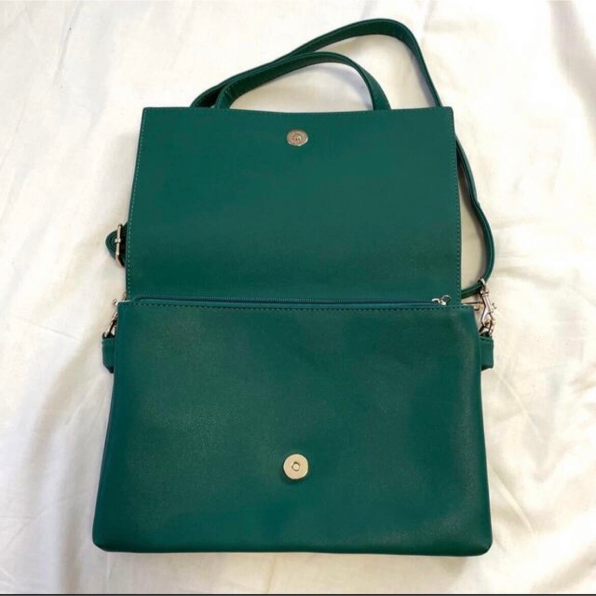 両面開閉★カラーショルダーバッグ★グリーン