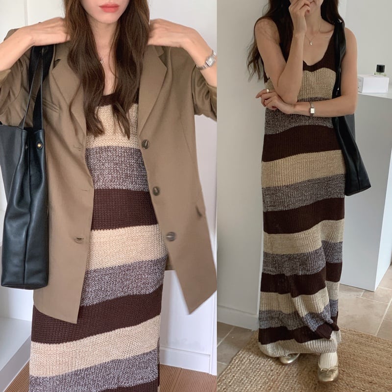 キャミワンピース★レディース★夏★お出かけ★エレガント★オシャレ★ボーダー★ワンピース★2color★フリー