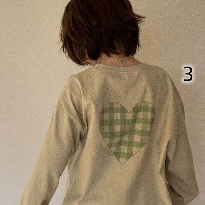 ハートとチェック柄が可愛い、男女兼用の長袖Tシャツ