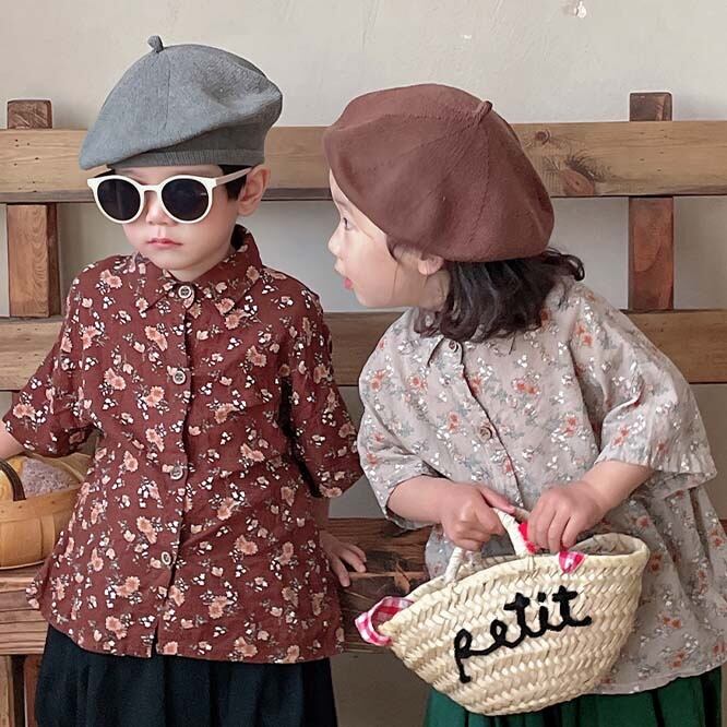 花柄シャツ★トップス★男女兼用★キッズ服★おしゃれ★半袖★2color★80-130