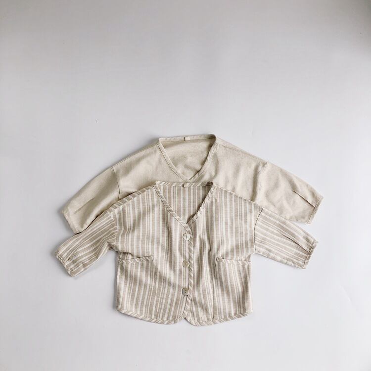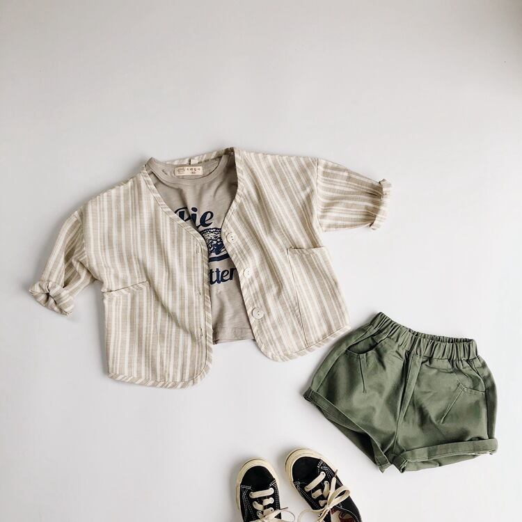 長袖★無地★ストライプ★アウター★カーディガン★薄手★子供服★ベビーキッズ★2color★80-130