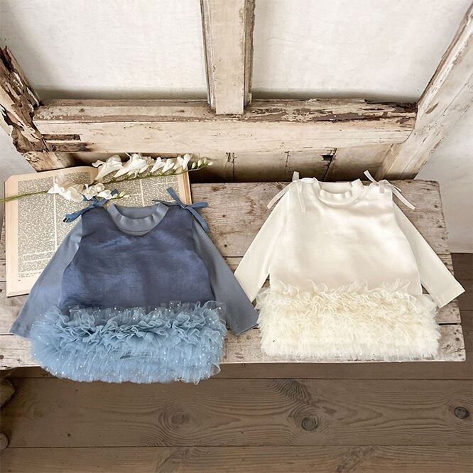 チュール付きキャミソール★トップス★2点セット★ベビーキッズ★子供服★2color★73-100